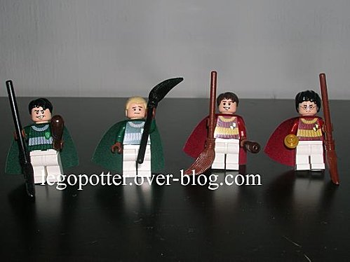 Les costumes sont très beaux (beaucoup plus que dans l’ancien set. Des jolies battes, une nouveauté, font leur apparition. On retrouve les balais noirs (nimbus 2001) et bruns (vieilleries de l’école et/ou éclair de feu) qui différencient les équipes.