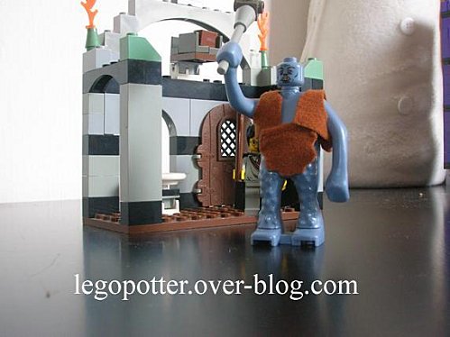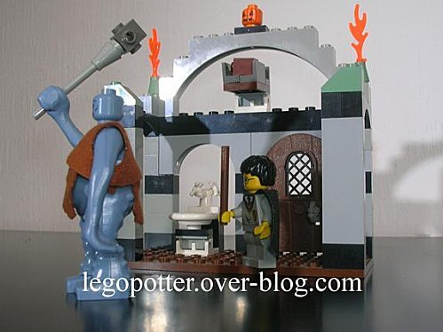 A la place, ils ont monté ce petit « piège ». D’un coup de doigt, les briques tombent sur la tête du troll et l’assomment. Une petite astuce digne du monde Lego ^^.