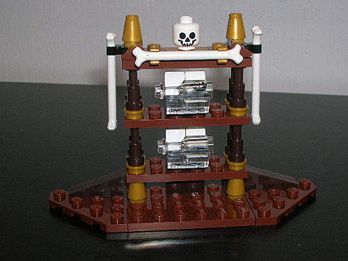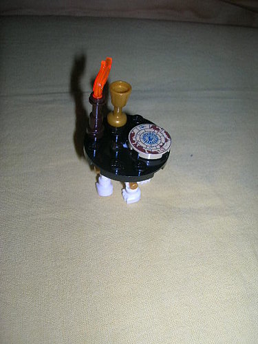 Le pied est plutôt bien pensé. Ceci dit, je vais faire du recyclage : la carte pour la salle de cours de Binns. L’accroche pieds servira pour faire un lustre. Les pieds pour faire des squelettes Ninjago, de belles bêtes.