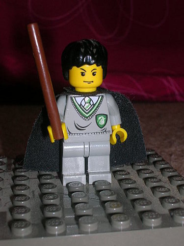 Je ne suis pas convaincue par cette minifigurine. Il a l’air méchant alors qu’il est surtout sournois. Et lui avoir mis la même perruque que Harry alors qu’il est censé être beau et chique… bof.