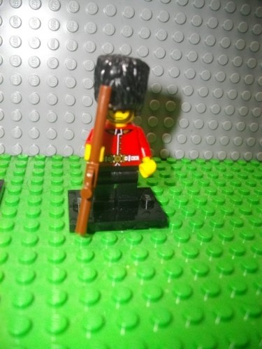 Son énorme chapeau en peau d’ours en plastique lui tombe sur les yeux !