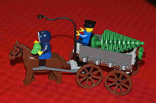 En attendant, bon pied bon oeil, elle continue sa construction et découvre la construction de sa boite. Au fait maman : le môme sur son cheval, tu lui as mis des jambes d’adulte. Faudra coriger après.