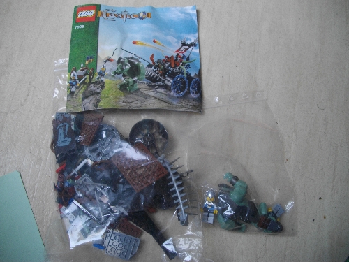 Il s’agit de la boite 7048 : le bateau des trolls. Une boite contenant pas moins de 411 piècs (ok c’est pas inhabituel) et…. 9 minifigurines ! Que des vilains méchants etun pauvre petit nain.